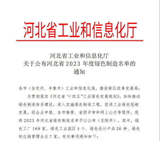 河北省“綠色工廠”公示榜單截圖(部分)